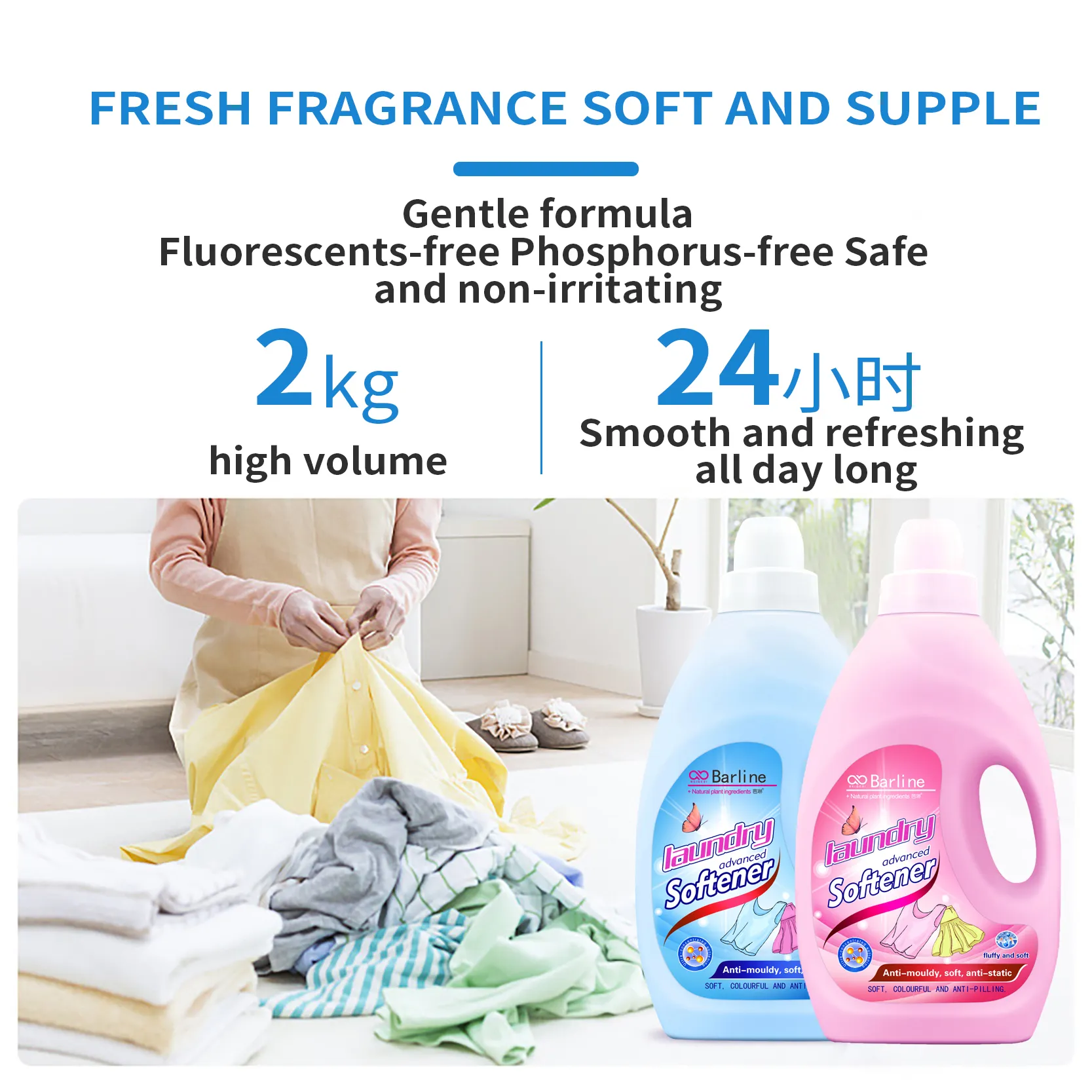 2 Liter Disposable Bottle of Natural Scent Fabric Softener Liquid Detergent for Clothing Apparels