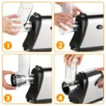 Note: If you are using the device for the first time, it may smell a bit, but this is normal and not a cause for concern. It does not affect the use of the device and does not jeopardize your health and safety. After disassembling the parts, we recommend washing them by hand to extend the life of the machine. Material: Plastic, Stainless Steel Color: Silver, Black Size: 11.5×19.0x20.0cm/4.5×7.5×7.9 inches Rated power: 250W Maximum power: 550W Rated voltage: 110-120V
