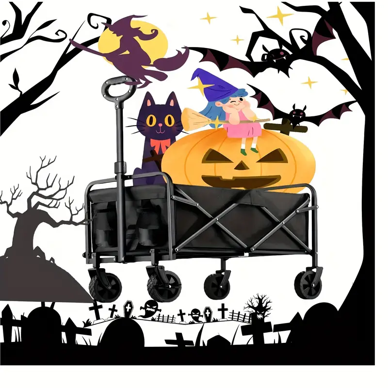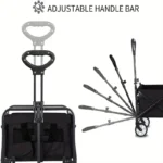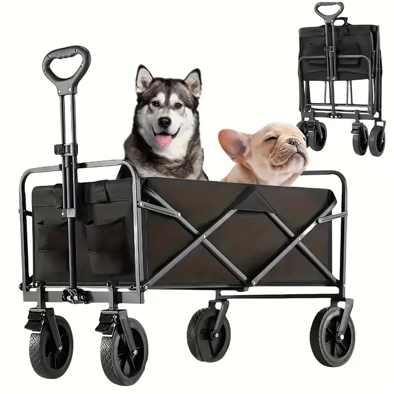 Carriage Foldable Folding Car: Can Load 330 Pounds Portable Utility Wagon With All Terrain Wheels Utility Heavy Duty Truck Outdoor Wide Camping Beach, Beach Fishing, Camping, Shopping, Black