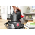 Permanently remove embedded dirt and stains with a trial-sized Hoover Oxy stain removing solution