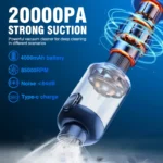 20000PA Powerful suction, easy car cleaning: This car vacuum cleaner has powerful suction power, which can easily suck up dust, debris, and even food residue or pet hair. If you have pets or children, it is definitely a must-have, making it super easy to keep your car clean! Switch – It has high/low mode and can be switched quickly.