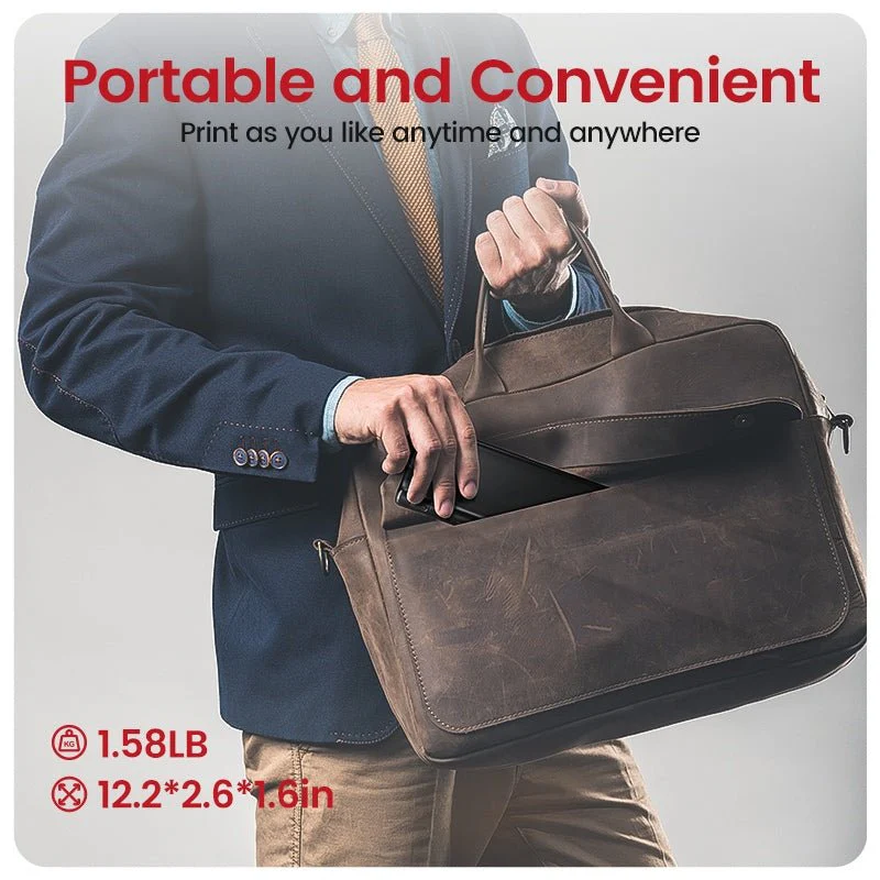 12.2*2.6*1.6inch in size, fits in the palm of your hand, weighing just 1.58LB—Weighs nearly as much as a bottle of mineral water—enabling printing anytime, anywhere.