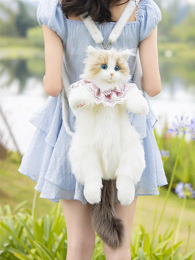 Realistic Plush Cat Backpacks. Don’t miss our realistic plush cat backpacks for women! This adorable backpack is both cute and practical. Join over 1000 happy customers who love our eye-catching designs! Personalize your stuffed cat backpack for girls with free accessories to make it even more unique and adorable. This cat backpack looks like a real cat and is an eye-catcher, making you stand out from the crowd.