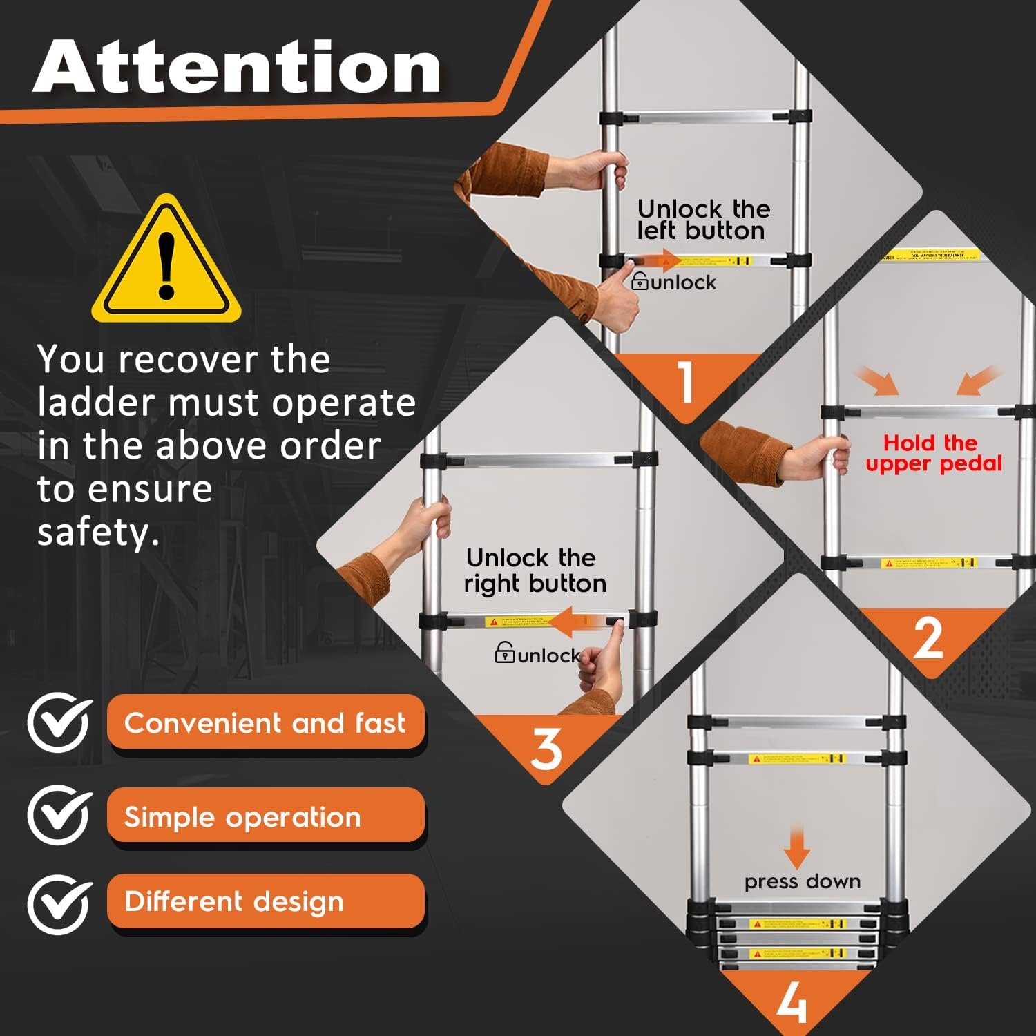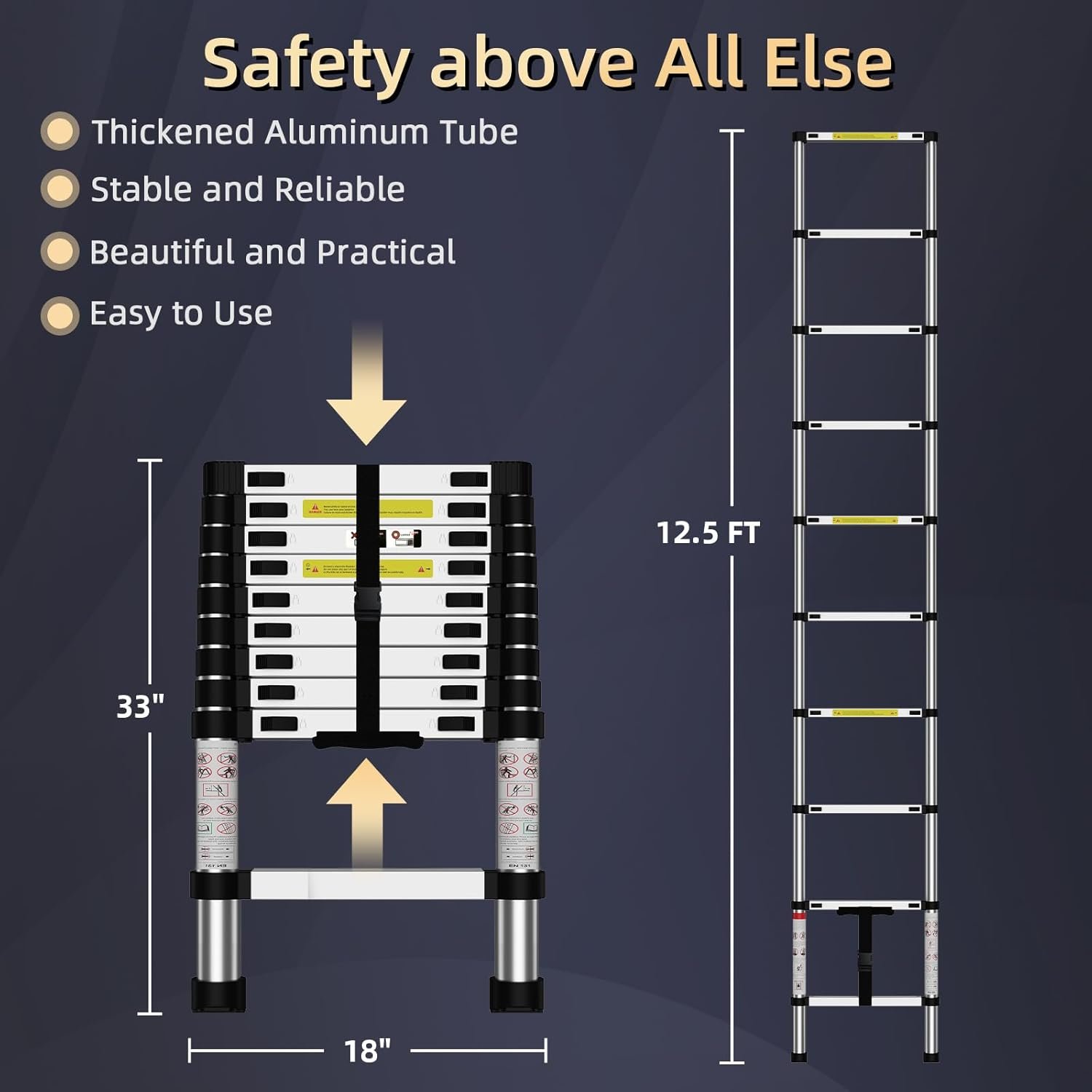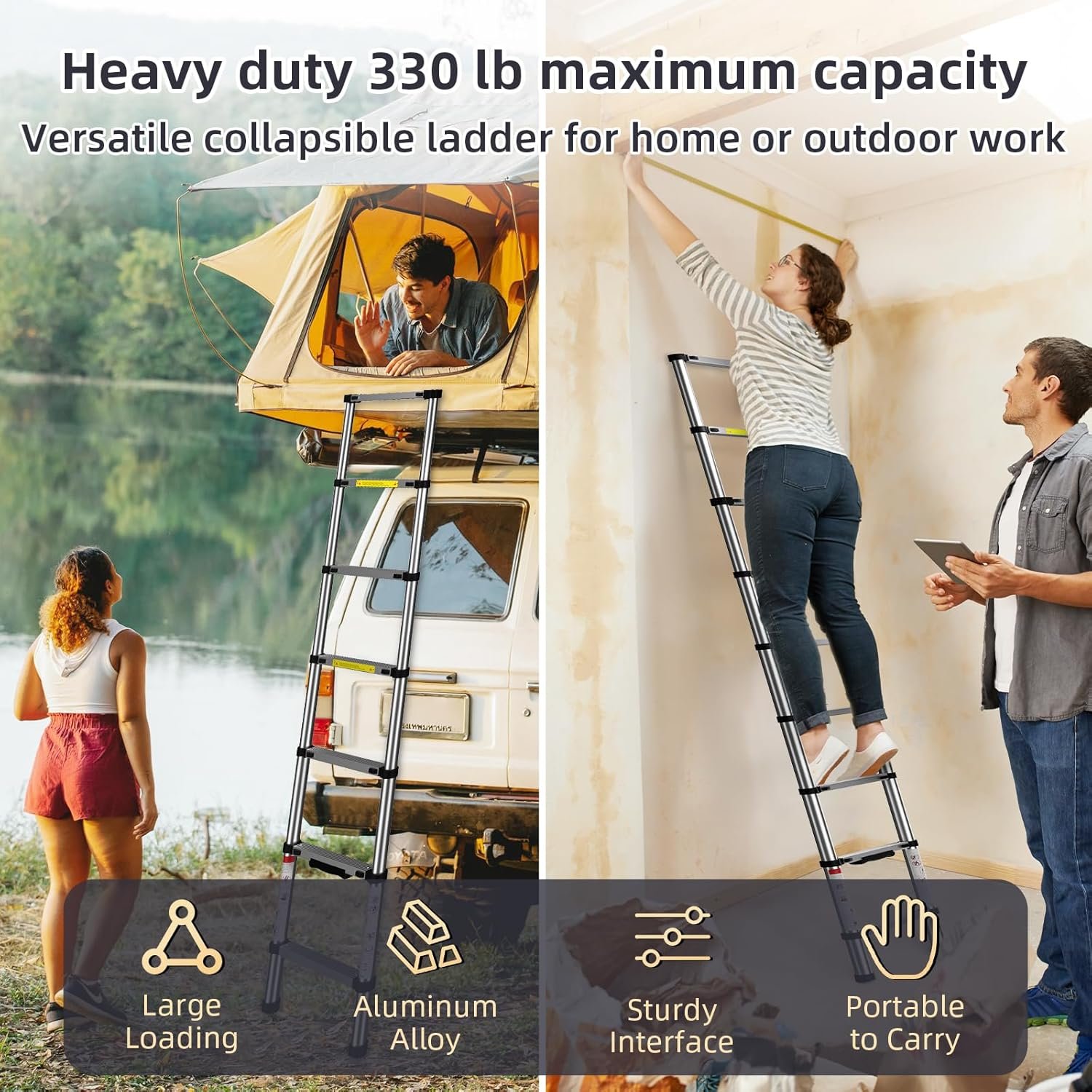 Telescoping Ladder – Max 18.5 FT (5.6 meters) & 400 lbs (181 kg)