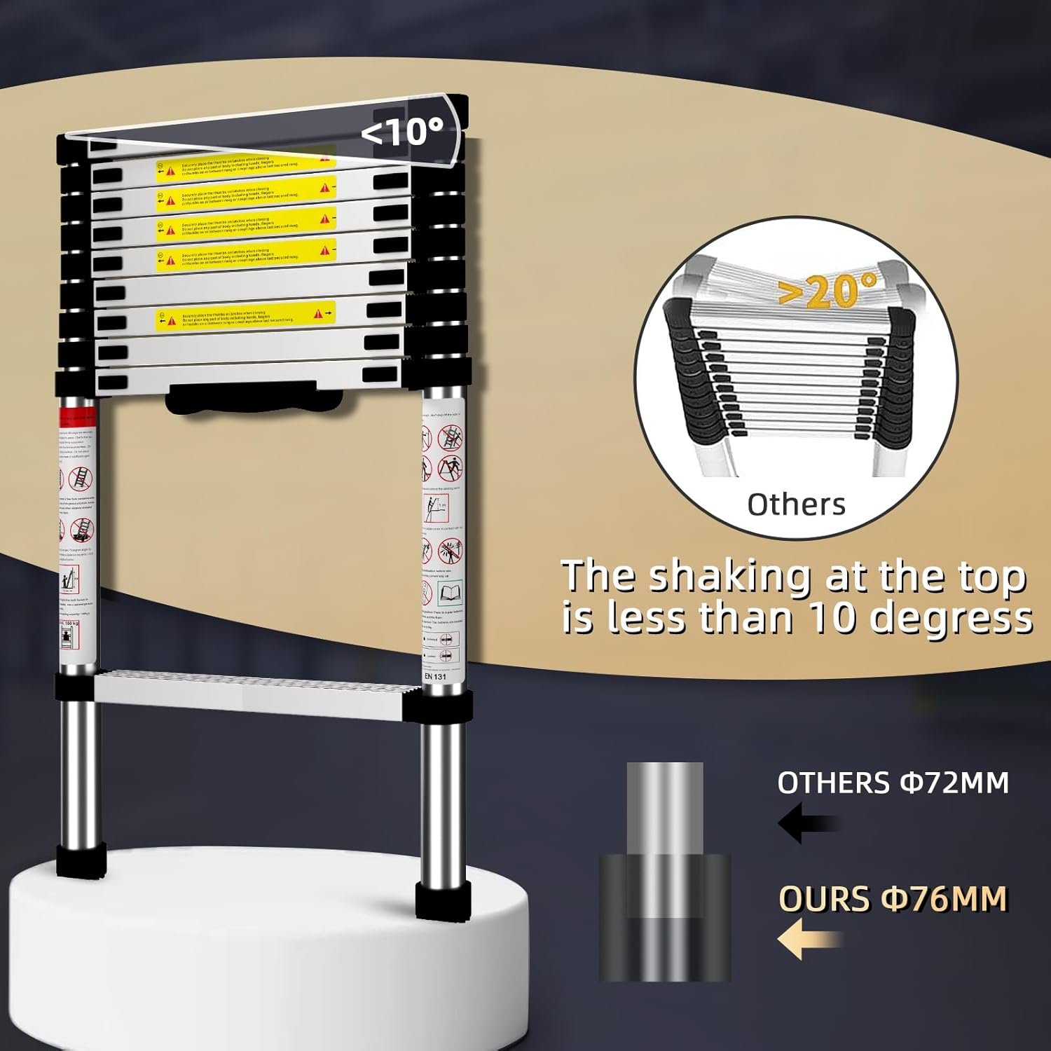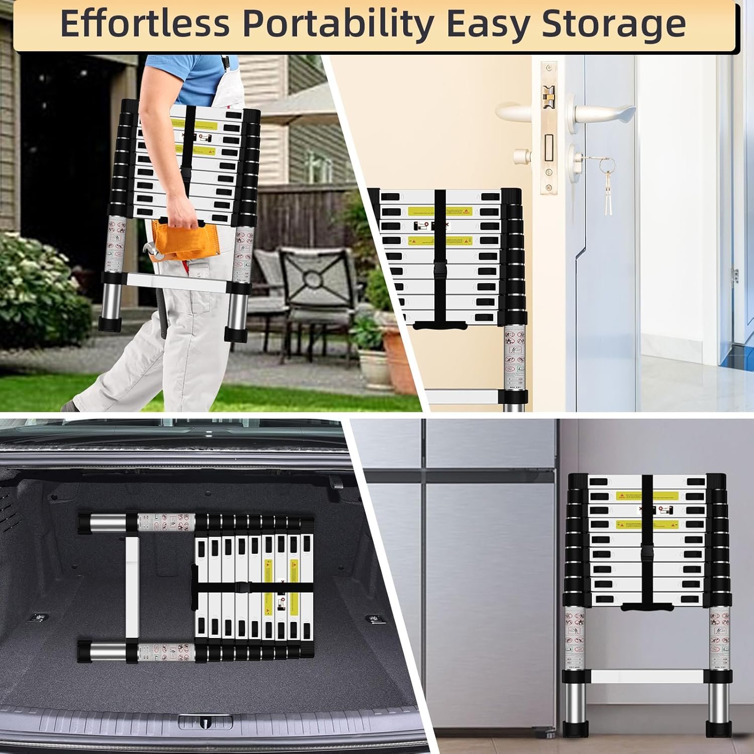 full aluminum alloy VEVOR telescoping ladder, long-lasting, withstands all temps, large load capacity.