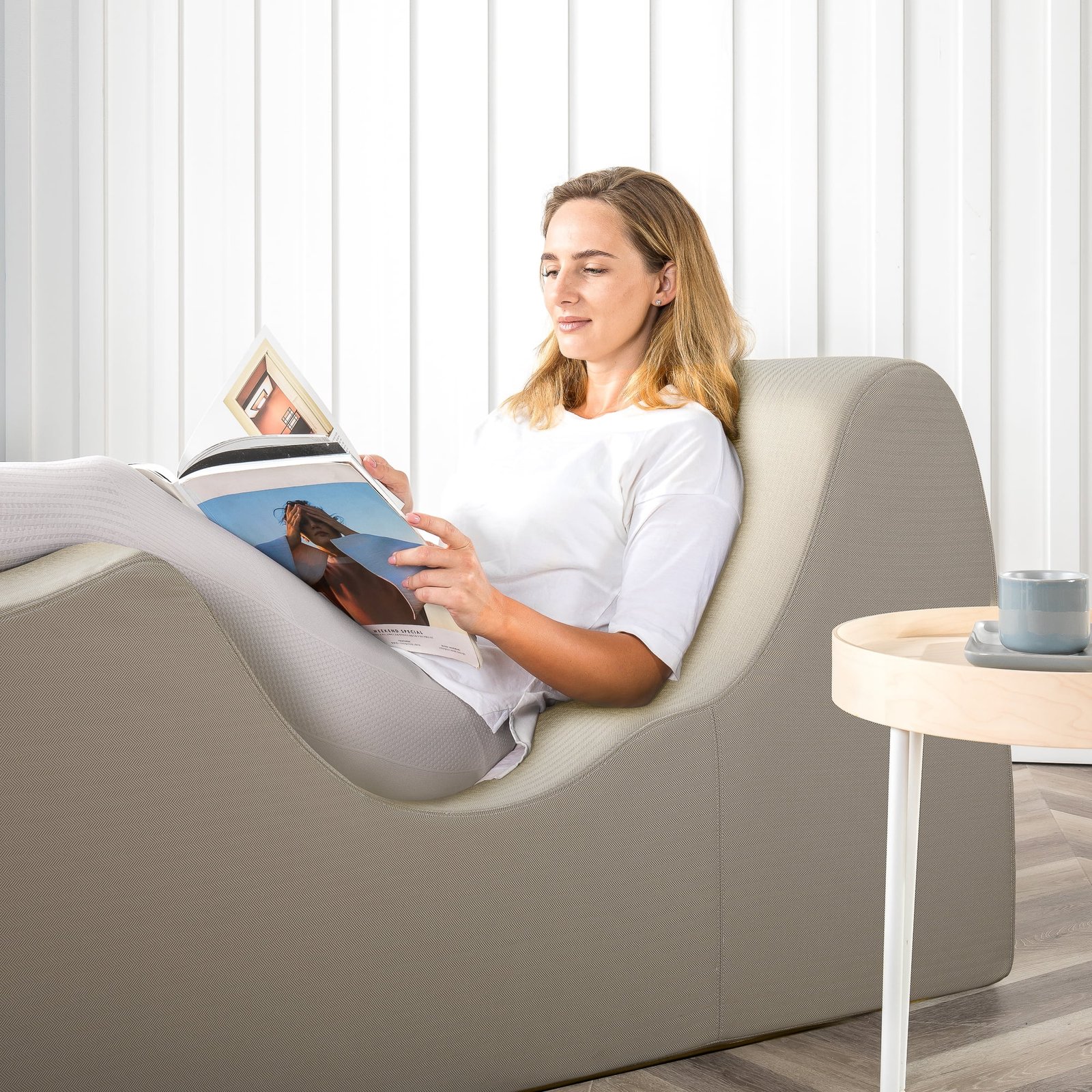 Zinus Lotus Zero Gravity Chaise Lounger, Herringbone Oatmeal | Relax and Unwind in Zero Gravity Position | High-Density Foam | Adjustable Lumbar Pillow | Easy Care Cover